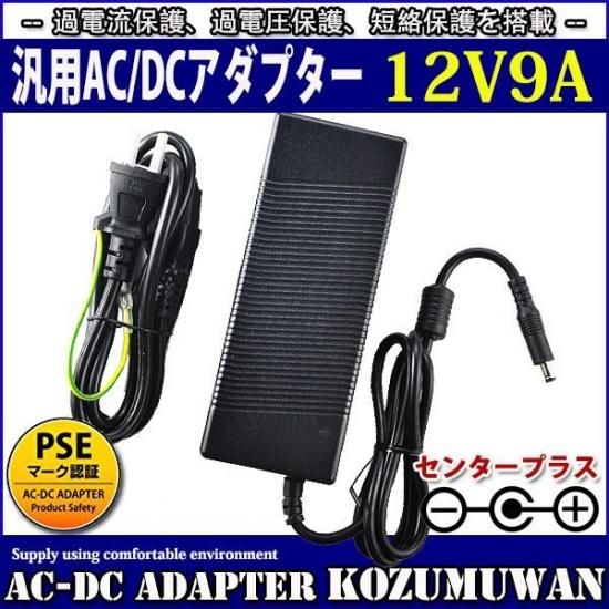 【1年保証付】汎用スイッチング式ACアダプター 12V/9A/最大出力108W 出力プラグ外径5.5mm(内径2.1mm) PSE取得品  汎用ACアダプター 12V 9A 最大出力108W PSE取得品 出力プラグ外径5.5mm(内径2.1mm) 1年保証付 (LEDテープライトに使用可       ◆電気用品安全法PSE 安全規格取得品 ◆定格入力電圧及び周波数:AC100V-240V 50Hz/60Hz ◆定格入力電流:1.6A ◆定格出力電圧・電流:DC12V 9A 最大108W ◆出力特性:安定化出力 ◆出力極性:センタープラス ◆重量:727g ◆制御方式:スイッチング方式 ◆ワールドワイド100V-240V対応 ◆アダプターの寿命を左右する電解コンデンサーに高信頼品 ◆過電流保護、過電圧保護、短絡保護を搭載 ◆保証期間:納入後1年間とする ◆使用条件:動作温度範囲:0〜+40℃ 20〜80%RH 保存温度範囲:−40〜+70℃ 20〜80%RH (但し、結露のないこと) ■使用上の注意 ・電源コードを引っ張ったり、上にものを載せたりしない。 ・キャスター付きのイスを移動する場合など、電源コードを踏んだり、巻き込んだりしない。 ・AC アダプターは、机や床の上に置くなどして宙づりの状態にしない。 ・電源コードや AC アダプターのプラグが不完全な差し込み状態では、使用しない。 ・電源コードを束ねたまま通電しない。 ・電源プラグにほこりが付着したままの状態で使用しない。 ・雷が鳴り始めたら、電源コンセントに接続した電源コードや AC アダプターに触れない。 ・AC アダプターを机の上の本等に埋もれさせたり、床の上のクッション等の下に置いたり、放熱しにくい場所に放置しない。 ・AC アダプターを肌が触れる位置に置いたり、枕、毛布、ソファー、カーペット、または衣類等の上に置かない。 ・乳幼児の手のとどくところに設置しない。 ・濡れた手で触ったり、水を使用したりする場所に放置しない。 ・直射日光のあたる場所、ヒーターやストーブなどの熱源の近くに放置しない。 ・水洗いや分解、改造はしないで下さい。 ※モーターのように電源投入時(スタート時)に定格電流を大きく上回る電流(ピーク電流)が あるものは動かない場合があります。ピーク電流をカバーしているかをご確認ください。 ※電流容量一杯で連続して使い続けると電解コンデンサーの充放電が激しくなり発熱しますので、 寿命が短くなります。使用する環境により一概に言えませんが、ひとつの目安として平均電流80%以下で 使用されることをおすすめいたします。  最近チェックした商品
