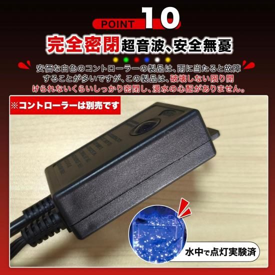 ・コントローラーは別売です。 常点灯電源コード付きタイプです。点滅やパターン制御には別売コントローラーをご使用ください。