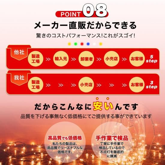 | 発光色 | 赤/青/緑/白/ウォームホワイト/ピンク/ミックス |