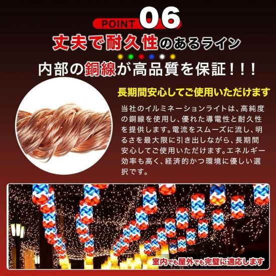 屋内外対応(生活防水)/最大1000球まで連結可能/高拡散LEDで明るい発光