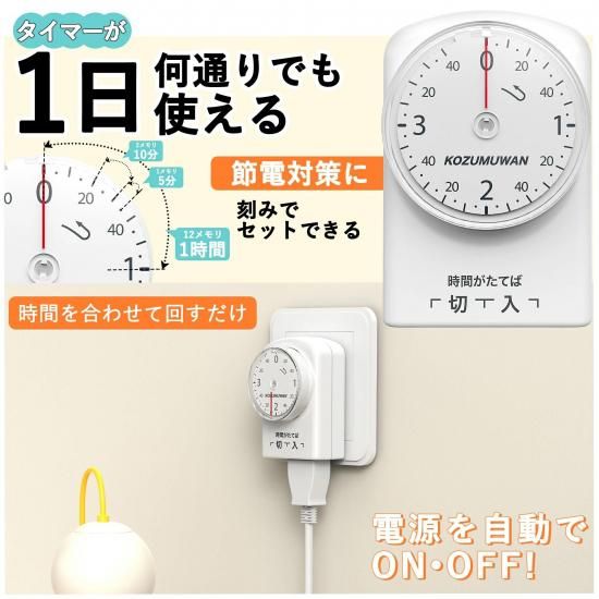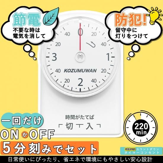 コンセントタイマー 電源タイマー 電源オンオフ 増設コンセント 時間管理 ワーキングタイマー 機械式 オフィス シンプル イルミネーション 節電 電気カーペット 電気スタンド カウントダウン式