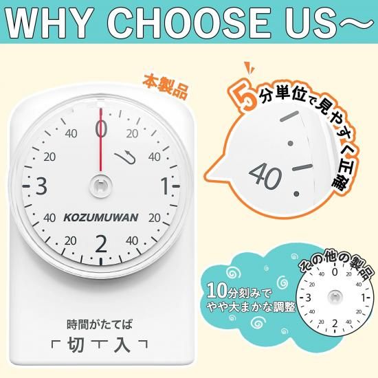 本製品は5分単位で細かく時間を設定できるため、より正確に通電時間をコントロールできます。一般的なタイマーのように30分単位ではなく、細かく調整できるのが魅力。無駄な電力消費を抑え、必要な時間だけ電気を使いたい方にぴったりです。