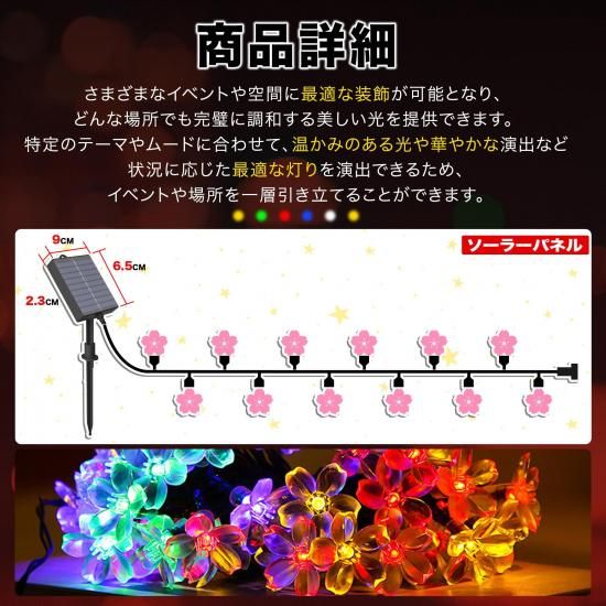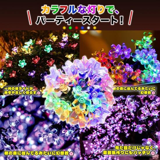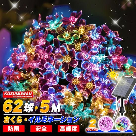 【電気代0円 ソーラー式】 イルミネーションライト ソーラー LED さくら 桜 ストリングライト ストレート 11m 62球 LED 防雨 クリスマス 電飾 看板点灯 ガーデンライト 屋外