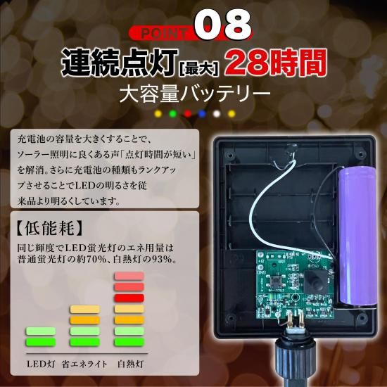 電気代0円/自動点灯/8パターン点灯/防水IP65/大容量バッテリー