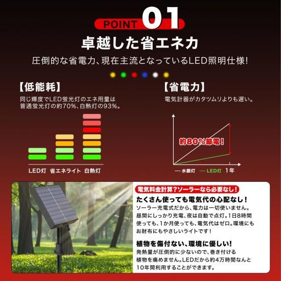 - 🌞 電気代0円: 太陽光充電のソーラー式。配線いらずで省エネ&エコ。