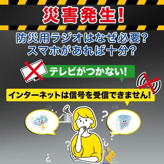 停電時や災害時の情報収集に。乾電池式なので電源が取れない状況でも安心です。