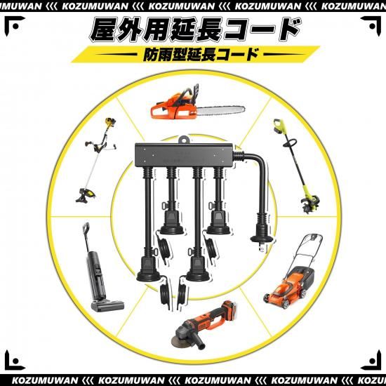 延長コード 防水防雨IPX4 4個口 防水コンセント 15A 1500W 電源タップ 防雨延長コード エコ 高耐久VCT トラッキング防止 分配コード 防塵 屋外作業用 工事 二重被覆
